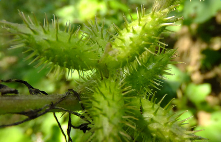 ㈢苍耳节内虫四十九条,捶碎,入人言少许,捶成块,刺疮令破,敷之,少顷以手撮出根。(《纲目
